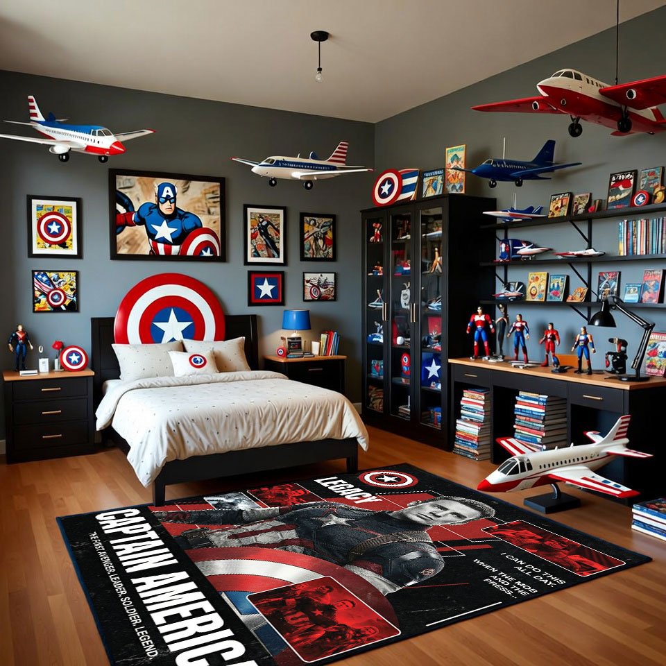 Captain America Leader Soldier Legend Rug – Marvel Superhero Bedroom Area Rug