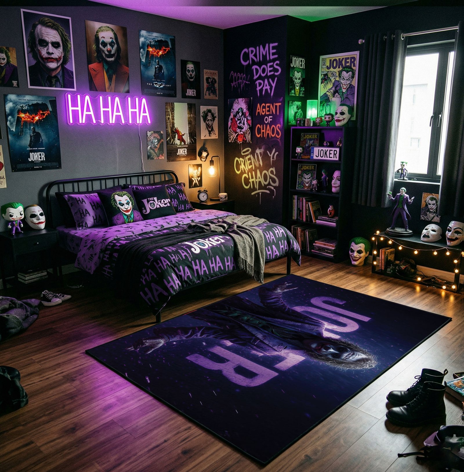Transform your living space with a bold touch of chaos and iconic style. The Joker Area Rug is more than just décor—it’s a tribute to one of the most legendary and unpredictable characters in pop culture. Inspired by comic art and the Joker’s signature expressions, it captures a spirit of rebellion, dark humor, and strong individuality.