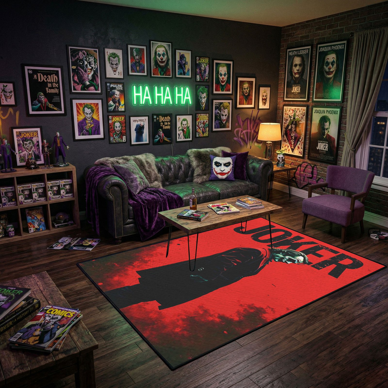 Transform your living space with a bold touch of chaos and iconic style. The Joker Area Rug is more than just décor—it’s a tribute to one of the most legendary and unpredictable characters in pop culture. Inspired by comic art and the Joker’s signature expressions, it captures a spirit of rebellion, dark humor, and strong individuality.