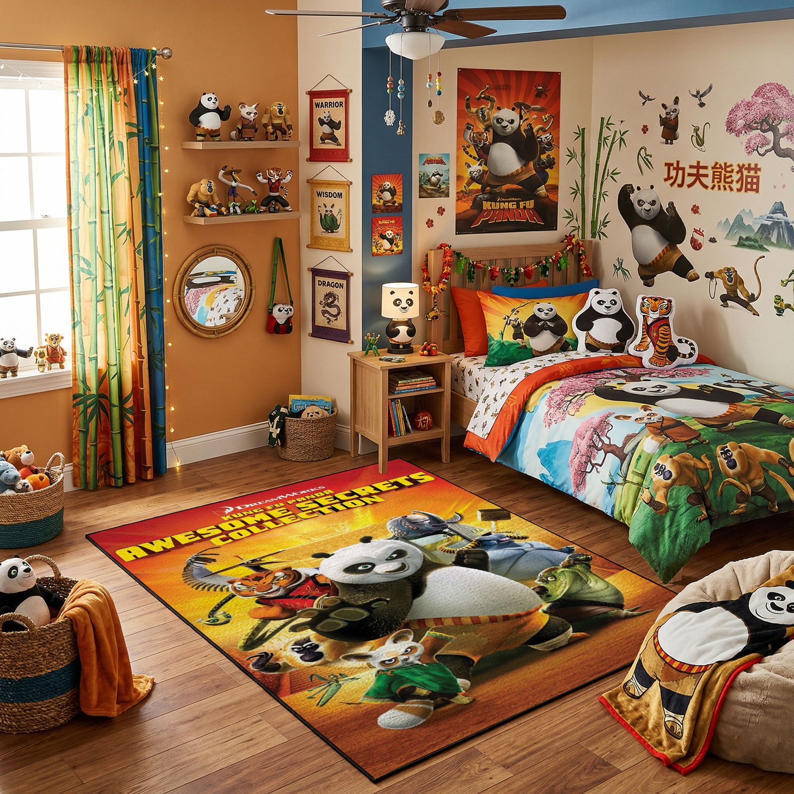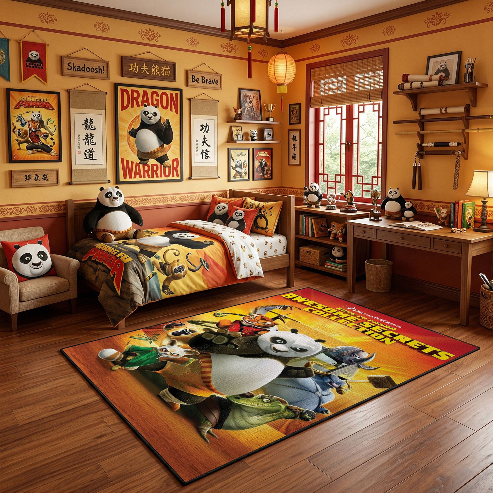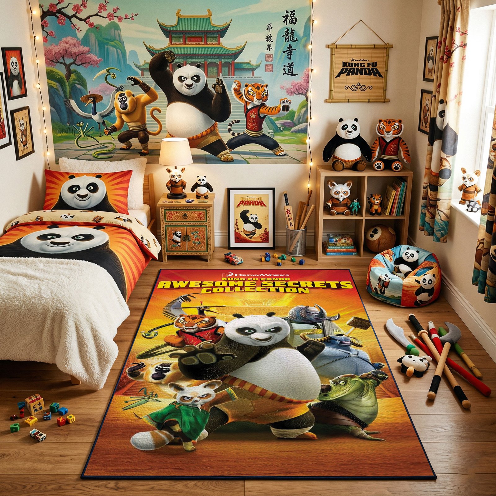 Uncover the legendary tales of the Valley of Peace with this Kung Fu Panda Awesome Secrets Collection rug, featuring Po and the iconic masters.