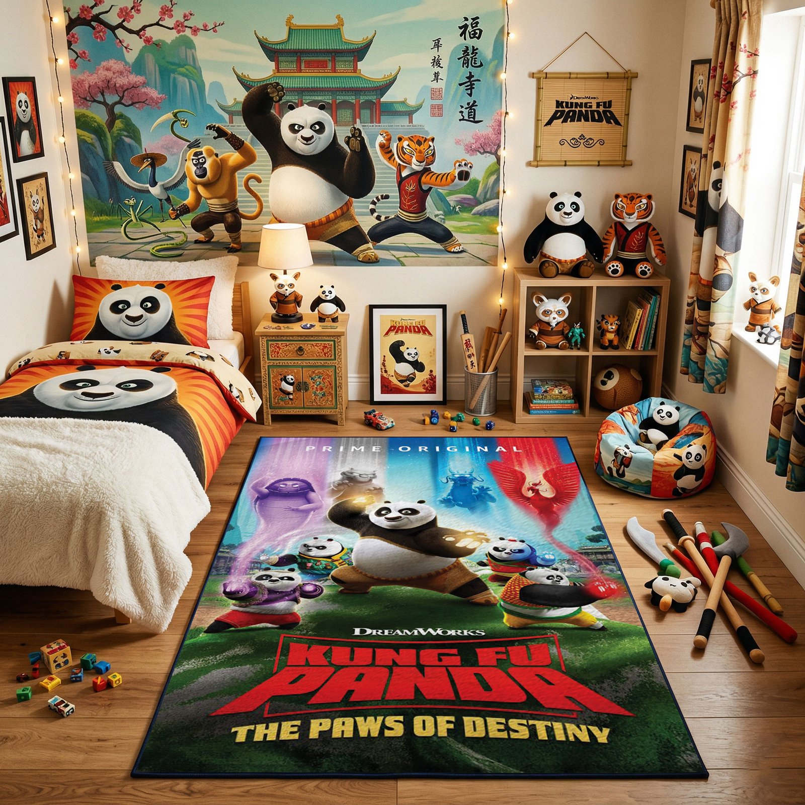Transform your sanctuary with the Kung Fu Panda Paws of Destiny Area Rug. Featuring a heroic high-definition illustration of Po and his young disciples, this piece is a true fan statement. Crafted from ultra-soft polyester with a non-slip backing, it delivers premium comfort and unparalleled legendary style for masters.