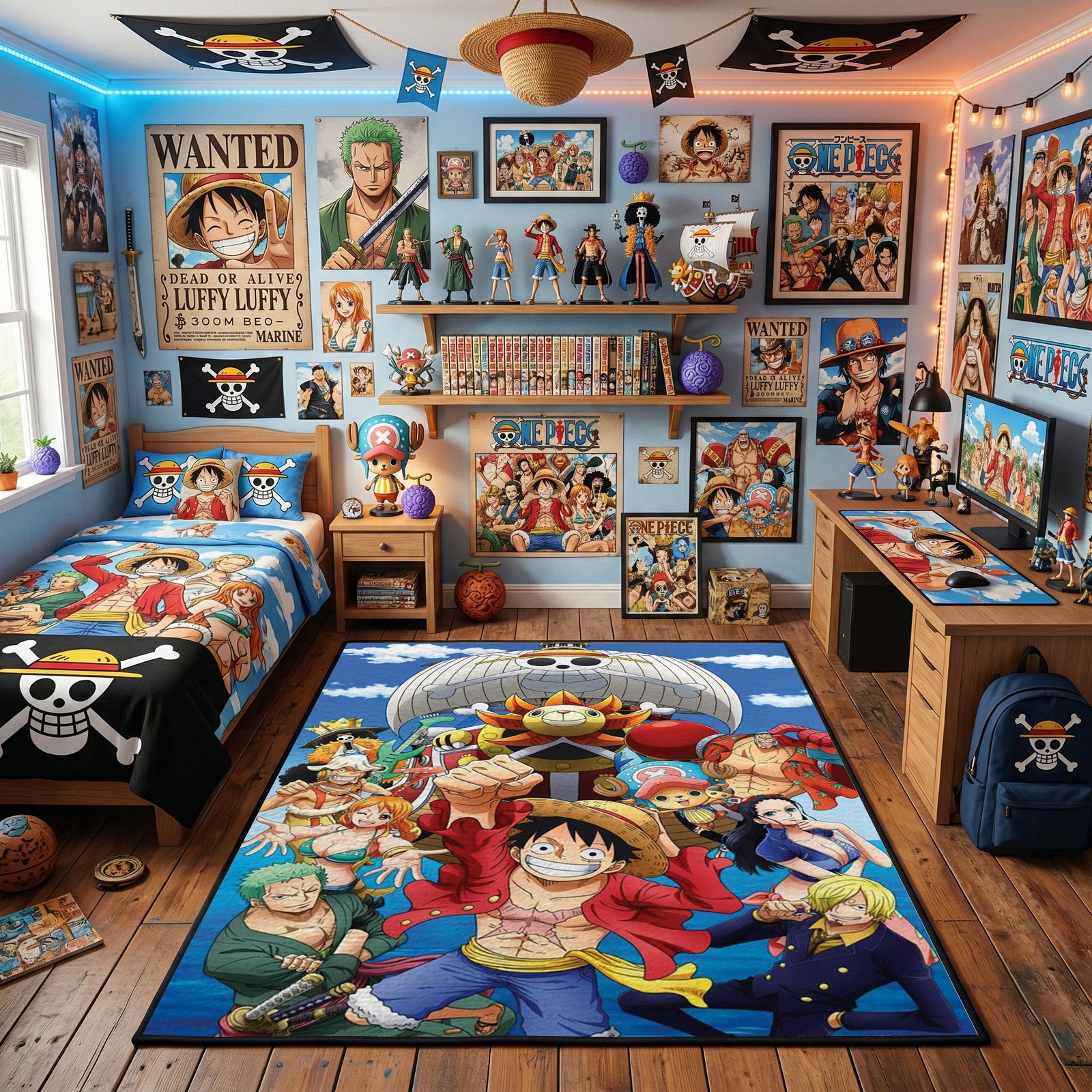 Transform your space into an anime-inspired adventure with the One Piece Inspired Rug, featuring the iconic Straw Hat Pirates design. More than just décor, it brings the spirit of freedom and exploration from the legendary anime into your home.