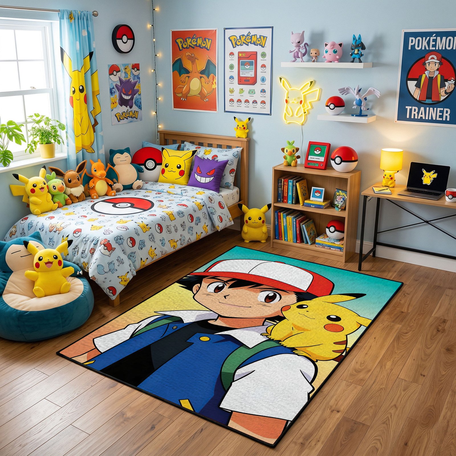 Bring the iconic bond of Ash and Pikachu into your home with this stunning portrait area rug, perfect for any aspiring Pokémon Master’s sanctuary.