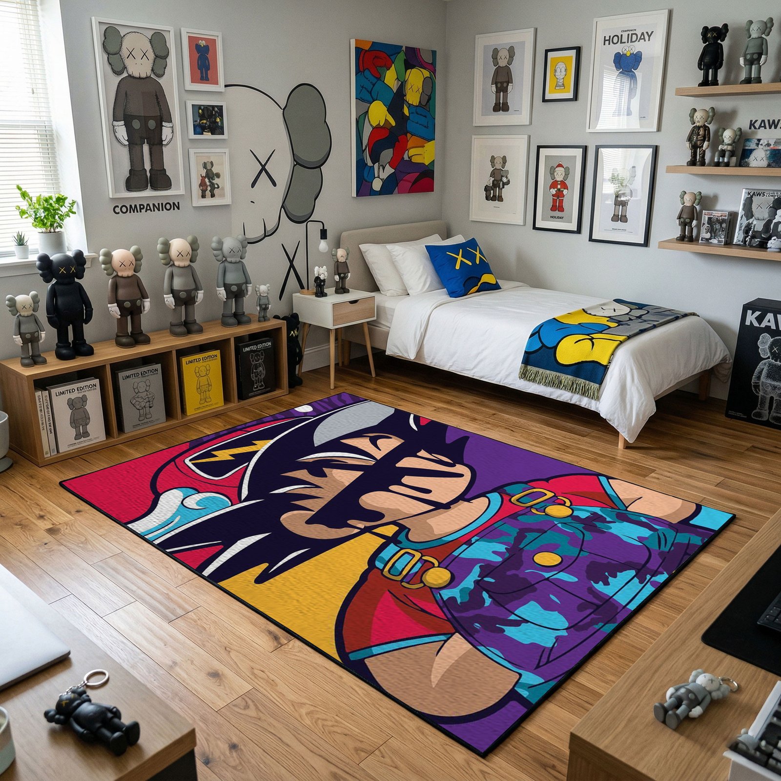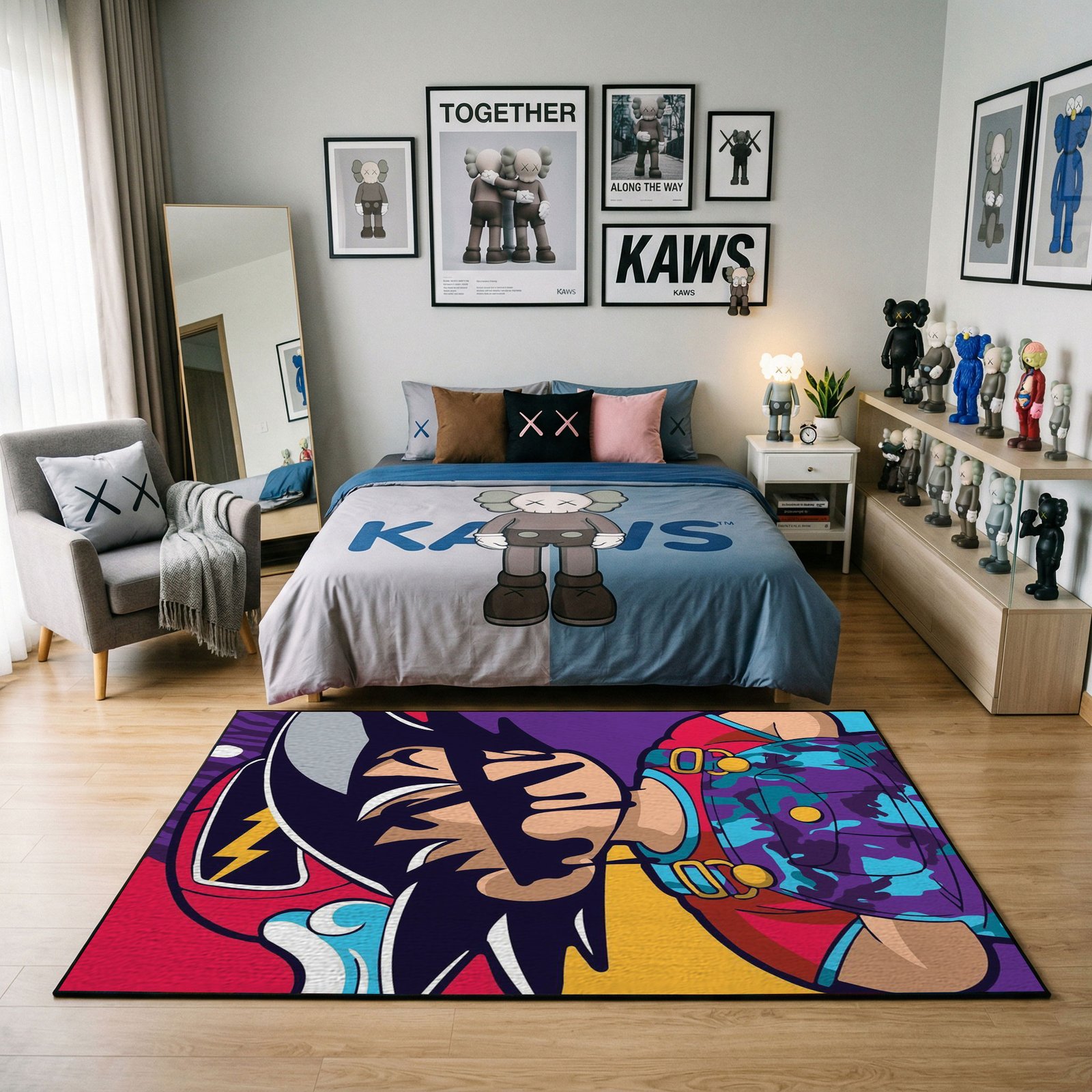 Transform your living space with a bold fusion of street art and contemporary culture. The KAWS-inspired Area Rug is more than just décor—it’s a statement piece that reflects modern artistic expression and playful rebellion. Inspired by iconic KAWS-style characters and graphic elements, this rug brings creativity, color, and attitude into your home.
